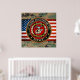 Presentamos el proyecto "Insignia militar 3D", mostrando diseños de alta calidad de heráldica militar. Aquí encontrará las impresiones de arte fino envueltas y estiradas en lona con insignia de la 15ª Unidad de Expedición Marina (15º MEU). La 15ª Unidad Expedicionaria Marina (15ª UME) es una de las siete Unidades Expedicionarias Marinas que existen actualmente en el Cuerpo de Marines de los Estados Unidos. La Unidad de Expedición Marina (UME) es un Equipo de Tareas sobre el Aire Marino en Tierra (MAGTF) con una dotación de unos 2.200 efectivos. El MEU consta de un elemento de mando, un batallón de infantería reforzado, un escuadrón de helicópteros compuestos y un batallón de logística de combate. El 15º MEU se encuentra actualmente en el campamento base del Cuerpo de Marines de Pendleton, California. La misión de la UME es proporcionar a los comandantes de los combatientes geográficos una fuerza de respuesta rápida desplegada hacia delante capaz de realizar operaciones especiales marítimas convencionales anfibias y seleccionadas de noche o en condiciones meteorológicas adversas desde el mar, por superficie y/o por aire, mientras se encuentran bajo restricciones de comunicaciones y electrónica.