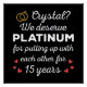Diseño divertido, perfecto para todo aquel que haya estado casado durante 15 años y para una ceremonia de renovación de la promesa boda. ¡Es un gran conjunto para las parejas! 'Cristalino? Merecemos Platinum por aguantarse la cita de 15 años para una pareja que se casó hace 15 años o una pareja que renueva los votos bodas en su aniversario de cristal. ¿Eres un marido o una mujer romántica? ¡Acentúa tu estilo con este arte! Gran regalo para tu amigo que se casó hace 15 años, esposo o esposa de 15 años, o papá y mamá celebrando su décimo quinto aniversario de boda.