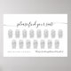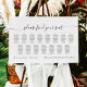 Gráfico de Asientos de Boda Minimalista Por favor encuentre su gráfico de asientos para 150 invitados. Un diseño elegante en negro y blanco o cualquier color de fondo que elija. Simplemente haga clic en el enlace personalizar más, que se muestra debajo del área de personalización de texto a la derecha, y elija el color de fondo personalizado. Esta plantilla de cartel hace que sea rápido y fácil crear adiciones impresionantes para la decoración de su boda. Los carteles se pueden disminuir, hay muchos tamaños para elegir, así como opciones para marcos y montajes personalizados.