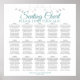 Haz que tu recepción de bodas sea hermosa con esta tabla de asientos. Diseñado como parte de nuestra suite de bodas Verde azulada y gris elegante, ofrece un diseño sencillo y elegante con texto verde azulado o turquesa y gris sobre un fondo blanco con un borde floral de imitación de Relieve metalizado plateado. Este gráfico muestra las asignaciones de tablas para que sus invitados tengan facilidad para encontrar la tabla correcta.