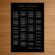 Póster 160 Sencilla tabla de asientos de Boda negro