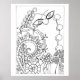 Mi dibujo en blanco y negro con una polilla y un caracol con flores de fantasía en un poster que los niños pueden colorear.