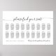 Tabla de asientos minimalistas para Bodas Por favor, encuentre su tabla de asientos para 180 personas. Un diseño elegante en blanco y negro o cualquier color de fondo que elija. Simplemente haga clic en el enlace personalizar adicional, que se muestra bajo el área de personalización de texto a la derecha, y elija el fondo de color personalizado. Esta plantilla de poster de signos hace que sea fácil y rápido crear increíbles adiciones a su decoración boda. Se pueden reducir los Rótulos, hay muchos tamaños a elegir, así como opciones para el enmarcado y apareamiento de personalizados.