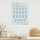 Póster 19 Tabla de asientos en polvo azul y Boda dorado