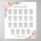 Esta bonita tabla de bodas de 19 mesas presenta un diseño rústico con flores de moda boho con rosas acuarelas pintadas a mano, flores y flores en tonos rosas, melocotón de marfil, rosa y malva polvorientos, así como brotes de hojas de eucalipto y vegetación en el jardín. El acondicionamiento tradicional tiene capacidad para 190 comensales, con 10 comensales por mesa, con un elegante título de caligrafía de escritura y espacio para los nombres de la pareja y la fecha boda en la parte inferior. Una forma maravillosa de añadir belleza, elegancia y estilo a la recepción de tu boda, haciendo que sea fácil para tus invitados encontrar sus asientos.
