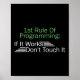 Este divertido diseño de programación de programadores de diseño de computadoras lee la primera regla de programación si funciona, no la toca. Perfecto para un administrador de bases de datos, un ingeniero de software o un profesional de informática que ama los datos y la informática y un administrador de bases de datos