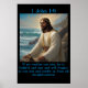 1 Juan 1:9: Si confesamos nuestros pecados, él es fiel y justo y nos perdonará nuestros pecados y nos purificará de toda injusticia. En un poster con Jesús sentado cerca del océano tranquilo y de un marco azul claro. ...