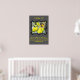 1 Juan 1:9: Si confesamos nuestros pecados, él es fiel y justo y nos perdonará nuestros pecados y nos purificará de toda injusticia. En un poster con un pájaro canario de burlas negro y amarillo en un peral y un marco negro. Obra de arte realista creada a partir de una pintura al óleo.