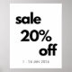 20% Cartel de venta en blanco y negro con fechas de personalizable. Diseñado en un estilo minimalista y elegante. Perfecto para tiendas y boutiques.