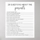 Póster 20 Preguntas sobre el juego de la ducha de bebé pa