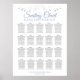 Haz que tu recepción de bodas sea hermosa con esta tabla de asientos. Diseñado como parte de nuestra Suite de Bodas Elegantes en Azul y Gris, cuenta con un diseño sencillo y elegante con texto azul claro y gris sobre un fondo blanco con un Relieve metalizado floral plateado. Este gráfico muestra las asignaciones de tablas para que sus invitados tengan facilidad para encontrar la tabla correcta.