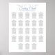 Haz que tu recepción de bodas sea hermosa con esta tabla de asientos. Diseñado como parte de nuestra Suite de Bodas Elegantes en Azul y Gris, cuenta con un diseño sencillo y elegante con texto azul claro y gris sobre un fondo blanco con un Relieve metalizado floral plateado. Este gráfico muestra las asignaciones de tablas para que sus invitados tengan facilidad para encontrar la tabla correcta.