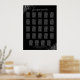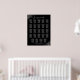 Este bonito cuadro de asientos bodas es sencillo pero elegante. Presenta un bonito diseño de texto gris claro sobre un fondo negro, con un florido Relieve metalizado de imitación plateado en las esquinas. Incluye mesas para 240 personas con 10 invitados por mesa.