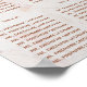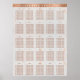 This seating chart has 25 tables. The background is white marble. The header is a faux metallic copper stripe. The text is written in caps and has a red brown color, like the copper, except the message "Please find your seat!" in the header, which is white.