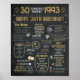 30.º Poster de cumpleaños Flashback ¡Un poster digital cargado de hechos divertidos, datos y aspectos destacados de lo que ocurrió en 1993! Texto dorado y blanco sobre un fondo de "textura de pizarra" - los defectos son parte del diseño para que parezca único y realista. ¡Estos posters hacen una excelente pieza de conversación para su próxima reunión o fiesta! Añade una alfombra y un marco y tienes un lindo conservador de cumpleaños.