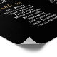Letras de Caligrafía con Brillo Dorado Falso para Asientos Encuentre su Asiento para 288-360 invitados (8-10 personas en una mesa). Un diseño elegante en dorado y negro o cualquier color de fondo que elija. Simplemente haga clic en el enlace personalizar más, que se muestra debajo del área de personalización de texto a la derecha, y elija el fondo de color personalizado. Esta plantilla de cartel de señal hace que sea rápido y fácil crear adiciones impresionantes para el decorado de su boda. Los carteles se pueden disminuir, hay muchos tamaños para elegir, así como opciones para marcos y montajes personalizados.