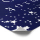 Un poster de bienvenida para un fiesta de 40 años. Un fondo azul marino con elegantes estrellas falsas de plata. El color azul es desigual. Personalice y agregue una foto, nombre y texto. Letras blancas.