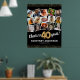 Elegante poster fiesta de 40 años con un elegante fondo negro que se puede cambiar a cualquier color, un collage de 15 fotos a lo largo de los años, el dicho 'vitorea a 40 años', bordes purpurinas dorados, su nombre y la fecha de la celebración.