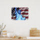 Poster de diseño para mostrar la bandera estadounidense y la estatua de la libertad. Esta obra de arte única seguramente atraerá la atención de todos. ¡Celebren la Independencia de Estados Unidos el 4 de julio ordenando ahora!