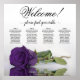 Esta impresionante tabla de bodas tiene cuatro mesas con 10 asientos por mesa, con capacidad para 40 comensales. La carta está decorada con un diseño sofisticado y romántico, con un único rosa de tallo largo y una rica y profunda sombra de púrpura real, que descansa delicadamente a su lado y refleja en una piscina de agua tranquila. El título de la gráfica, escrito en graceful script calligraphy, da una cálida bienvenida a los huéspedes con "¡Bienvenidos! Por favor, encuentra tu mesa" mientras deja un amplio espacio debajo para los nombres de la pareja y la fecha del boda. Esta elegante carta de asientos sirve como una forma encantadora y práctica de saludar y ayudar a sus huéspedes a encontrar sus asientos designados en la recepción de su boda.