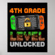 Póster 4th Grade Level Unlocked Pixel Game First Day Boy