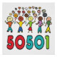 El diseño del 50501 muestra un grupo mixto de personas protestando con la letra "50501" que aparece a continuación. Cincuenta protestas, cincuenta estados, un movimiento.