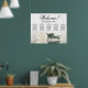 Esta exquisita carta de bodas tiene capacidad para 50 comensales y se compone de cinco mesas con 10 asientos por mesa. El diseño es una bonita mezcla de clase, elegancia y romanticismo, con un único rosa de marfil de tallo largo, blanco o crema que se refleja con elegancia en una piscina de agua tranquila. El título, representado en una elegante caligrafía de escritura, invita calurosamente a los huéspedes con "Bienvenidos! Por favor, encuentra tu mesa", dejando un amplio espacio debajo para los nombres de la pareja y la fecha de boda. Este cuadro es una forma encantadora y práctica de acoger a los huéspedes y ayudarles a ubicar sus asientos asignados en la recepción de la boda, exudando un aire de gracia y sofisticación.