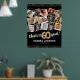 Elegante poster de la fiesta de cumpleaños número 60 con un elegante fondo negro que se puede cambiar a cualquier color, un collage de fotos de 15 años a través de los años, el dicho 'vitorea a los 60 años', bordes dorados purpurinas, su nombre y la fecha de la celebración.
