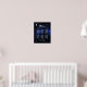 Un diseño de boda para un tema de boda celestial, con la luna y la estrella en un fondo azul de noche estrellada. La palabra Bienvenidos y los nombres están escritos en una elegante letra caligráfica. La luna y la palabra Boda son de un gris plateado, el resto del texto es blanco.