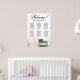Este bonito cuadro de bodas tiene seis mesas, cada una con capacidad para 10 comensales y un total de 60 comensales. La carta presenta un diseño romántico, con un único rosa de marfil de tallo largo, blanco o crema que descansa en su costado y se refleja en una piscina de agua tranquila. El título de la gráfica, representado en una elegante caligrafía de escritura, invita a los huéspedes con "Bienvenida! Por favor, encuentren su mesa", mientras dejan suficiente espacio en la parte inferior para los nombres de la pareja y la fecha de boda. Esta carta de asientos es una forma maravillosa y práctica de saludar a los huéspedes y ayudarlos a encontrar sus asientos en la recepción, exuberante un aire de encanto y sofisticación.