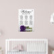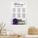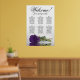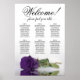 Este bonito cuadro de bodas tiene seis mesas, cada una con capacidad para 10 comensales y un total de 60 comensales. La gráfica presenta un diseño romántico, mostrando a un solo rosa de púrpura real profundo de tallo largo descansando delicadamente a su lado y reflexionando en una piscina de agua tranquila. El título de la gráfica, representado en una elegante caligrafía de escritura, invita a los huéspedes con "Bienvenida! Por favor, encuentren su mesa", mientras dejan suficiente espacio en la parte inferior para los nombres de la pareja y la fecha de boda. Esta carta de asientos es una forma maravillosa y práctica de saludar a los huéspedes y ayudarlos a encontrar sus asientos en la recepción, exuberante un aire de encanto y sofisticación.