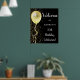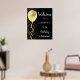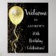 poster de bienvenida personalizable de 70 años, con un globo purpurina dorado, con una ducha de purpurina dorado sobre un fondo negro.