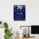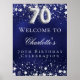 Un cartel de bienvenida para una fiesta de cumpleaños número 70. Un fondo azul marino con elegantes estrellas falsas de plata. El color azul es desigual. Personalice y agregue un nombre y un texto. Letras blancas.