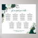 Este hermoso plano de asientos para boda acomoda hasta 70 invitados en 7 mesas con 10 asientos por mesa. La encantadora obra de arte acuarela rústica muestra una deliciosa combinación de rosas en tonos verde esmeralda y salvia, rodeadas de ramitas de hojas de eucalipto y follaje de jardín. La caligrafía del título le da un aire de sofisticación, y hay espacio amplio debajo para los nombres de la pareja y la fecha de la boda. No solo aporta un elemento de gracia y refinamiento a su recepción de boda, sino que también ayuda a los invitados a localizar fácilmente sus asientos designados.