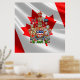 Presentamos la colección "World Heraldry 3D" de Serge Averbukh, que muestra un arte herálgico único de todo el mundo. Aquí encontrará impresiones de tela envueltas y envueltas/estiradas con el Escudo de Armas de Canadá. Canadá es un país norteamericano compuesto por diez provincias y tres territorios. Ubicada en la parte norte del continente, se extiende desde el Océano Atlántico en el este hasta el Océano Pacífico en el oeste, y hacia el norte hacia el Océano Ártico. Con una extensión de más de 9,9 millones de kilómetros cuadrados, Canadá es el segundo país más grande del mundo por área total, y su frontera común con Estados Unidos es la frontera terrestre más larga del mundo. Desde 1921, las armas del Canadá (conocidas también como el Escudo Real de Armas del Canadá o oficialmente como las armas de Su Majestad la Reina por derecho del Canadá) son el escudo de armas oficial del monarca canadiense y, por tanto, también del Canadá. Está estrechamente inspirado en el escudo real de armas del Reino Unido, con elementos canadienses distintivos que sustituyen o se añaden a los derivados de los británicos.