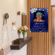 Un poster de bienvenida para una fiesta de cumpleaños número 90. Un fondo azul marino con elegantes estrellas falsas de plata. El color azul es desigual. Personalice y agregue una foto, nombre y texto. Letras blancas.