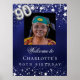 Póster 90.º cumpleaños estrellas de plata azul foto bienv