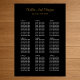 Póster 90 Sencilla tabla de asientos de Boda negro