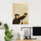 Un poster con las 95 tesis que Martin Luther clavó a la puerta de la iglesia Wittenberg, junto con el propio Martin Luther, dibujadas y pintadas por el dueño de la tienda.