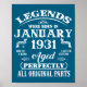 Póster 95th Birthday Gift Legend Born In January 1931 95