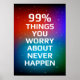 Motivational poster. 99% things you worry about never happen. Open space, starry sky style. Print design. Dark background