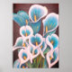 Póster A4 Hermosas flores Verde azuladas pintura acrílica