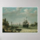 This is a coastal landscape with figures on the shore with a Spanish Man-o'-war putting to sea as a dutch fleet approaches