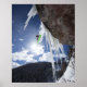 Póster A male snowboarder jumps off an ice waterfall