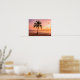 A palm tree stands alone on the beach at sunset. Soft pastel colors