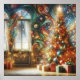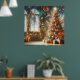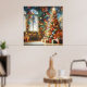 Póster A Retro Style Christmas Tree With Presents on Wall