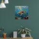 Póster A Sea Turtle and Sun Rays in the Ocean Blue