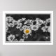 Frame this poster to add some contemporary art to your walls. Black and white photo of daisies with one daisy in color. Looks great with basic black frame.