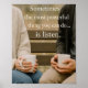 Este arte de pared apaciguador capta la fuerza tranquila de la conexión. Con dos personas sentadas juntas en un banco de un parque, sosteniendo tazas calientes en la mano, esta imagen nos recuerda el simple poder de estar presentes. Que sirva como un recordatorio diario de que escuchar —escuchar verdaderamente— puede cambiar todo. Perfecto para: ・ Espacios terapéuticos ・ Esquinas para el café ・ Entornos tranquilos en el hogar ・ Regalos para amigos, consejeros o profesores Trae esta visual sincera a cualquier espacio donde la empatía importe.