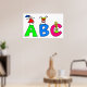 Ilustracion personalizado de niños y chicas felices y diversos trepando sobre letras gigantes del alfabeto que deletrea la palabra ABC. Imagen disponible en varios regalos y productos. Posters. Impresiones.